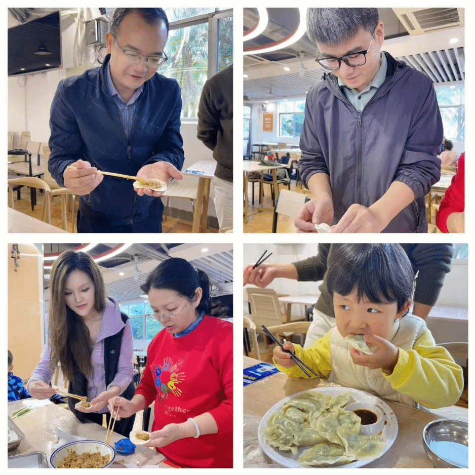 活动现场气氛热烈,充满了欢声笑语,大家一边交流着包饺子的技巧,一边分享着生活和工作中的趣事。女职工带着孩子们一起动手包饺子,展现了别样的家庭温馨和团队合作精神。有的女职工手法娴熟,包出的饺子精致美观。小朋友们也不甘示弱,创意十足地包出了各种形状独特的“大肚饺”,圆鼓鼓的模样十分可爱,引得现场笑声连连。