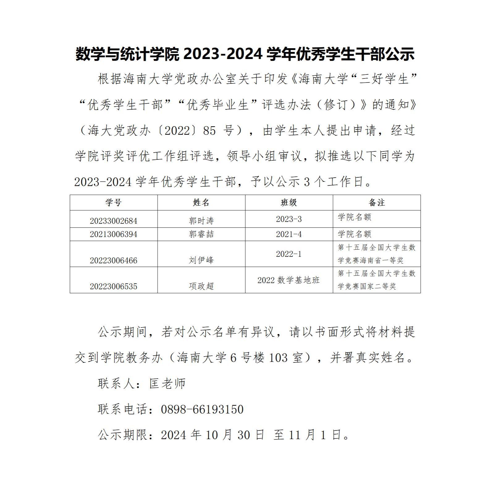 SUNBET申搏官网2023-2024学年优秀学生干部公示