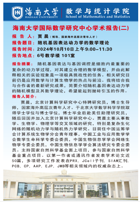 SUNBET申搏官网国际数学研究中心学术报告(二):随机基因表达动力学的数学理论